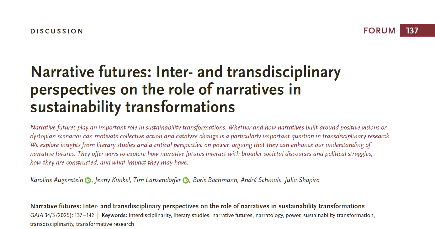 Neuer Diskussionsbeitrag: "Narrative futures: Inter- and transdisciplinary perspectives on the role of narratives in sustainability transformations"